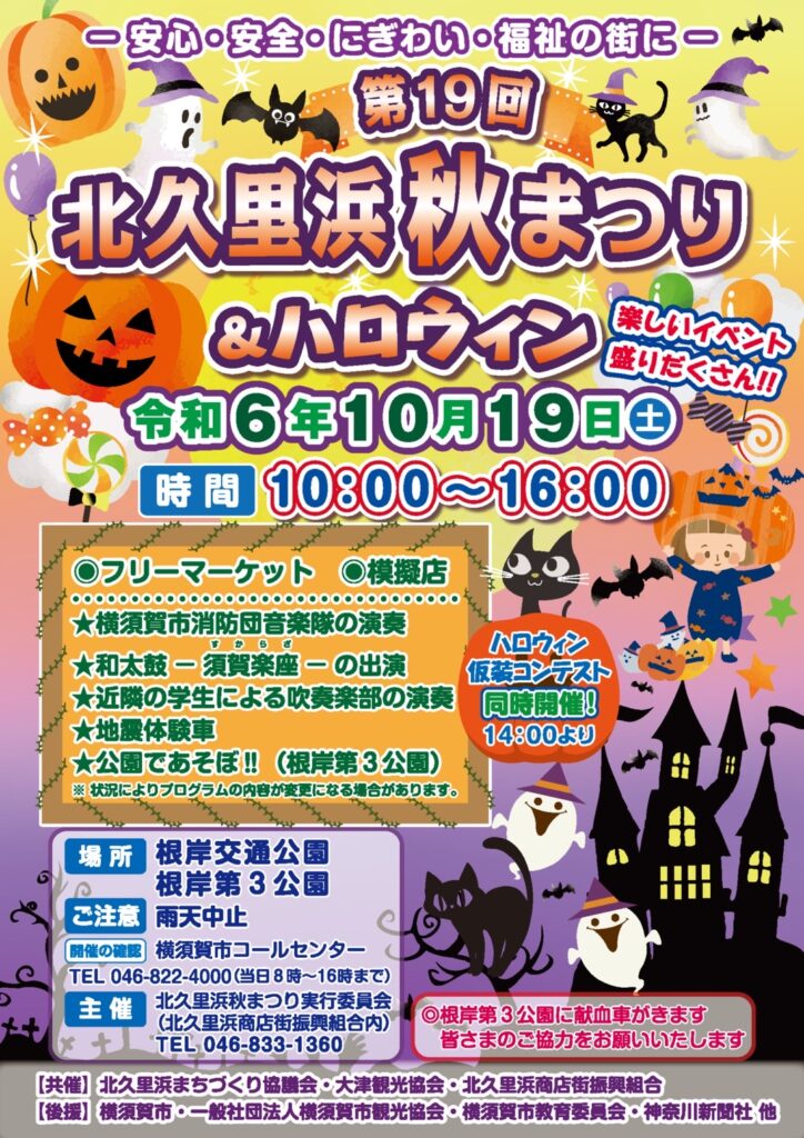 10月19日(土)北久里浜交通公園で開催される第19回「北久里浜秋まつり&ハロウィン」に須賀楽座で出演します。